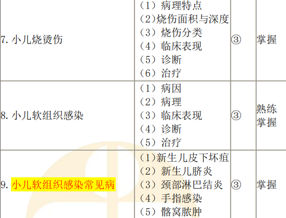 3.小兒外科液體療法 | (1)小兒體液代謝 | ③ | 熟練掌握 | |