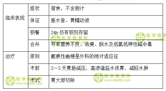 三、【問題】瘢痕性幽門梗阻的臨床表現(xiàn)及治療?