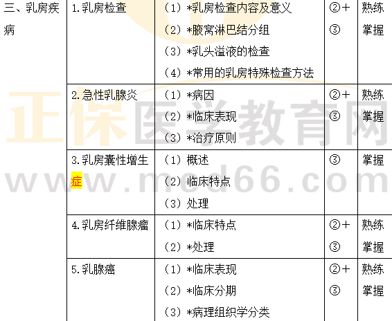 5.甲狀腺腫瘤 | (1)*甲狀腺腺瘤的診斷和治療 | ②+③ | 熟練掌握 | |