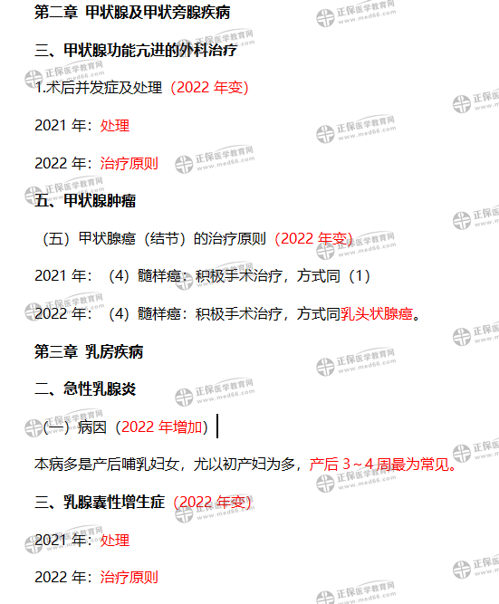 甲狀腺及甲狀旁腺疾病、乳房疾病是外科主治醫(yī)師考試教材涉及的內(nèi)容,2022年外科主治醫(yī)師教材已公布,甲狀腺及甲狀旁腺疾病、乳房疾病部分內(nèi)容變化,醫(yī)學教育網(wǎng)整理如下:
