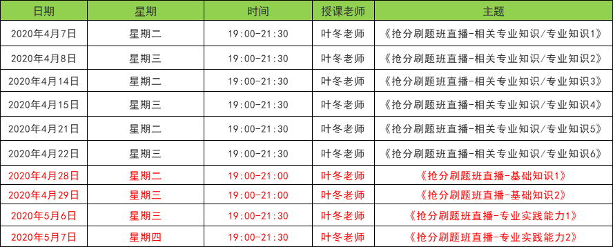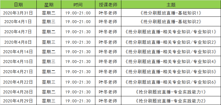 (課表因考試延期有所調(diào)整,建議各位考生收藏本頁面,及時(shí)查看,避免錯(cuò)過課程)
