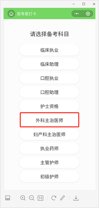 第二步:進(jìn)入小程序,選擇您的備考科目,如“外科主治醫(yī)師”