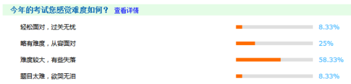 2021年外科主治醫(yī)師考試已經(jīng)結(jié)束,醫(yī)學(xué)教育網(wǎng)進行了考后問卷,多位外科主治考生參與作答,從得到的數(shù)據(jù)來看,大多數(shù)考生覺得外科主治醫(yī)師考試有難度,其中有66%外科主治醫(yī)師考生認為外科主治醫(yī)師考試難度大,可見外科主治醫(yī)師考試還是有一定難度的。