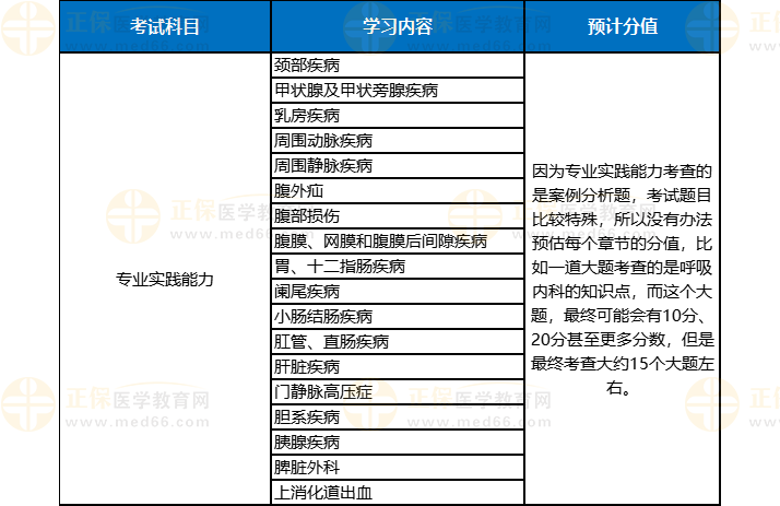 外科主治醫(yī)師各科目分值是根據(jù)往年考試情況分析所得結(jié)果,由于每年的考試情況可能有所不同,僅作為參考,具體分值占比要以實際考試為準(zhǔn)。復(fù)習(xí)時間緊迫,各位考生要加油復(fù)習(xí),醫(yī)學(xué)教育網(wǎng)推出多個沖刺備考課程,趕快了解!