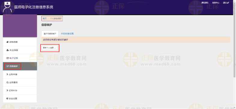 1、點(diǎn)擊【信息維護(hù)】-【更新個(gè)人信息】
