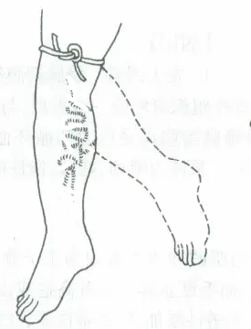 操作:大腿中上部扎止血帶,讓患者用力踢腿或做下蹲運動10余次