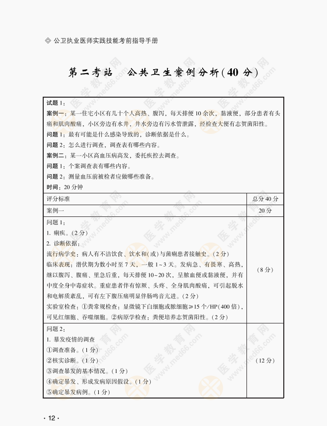 以上就是醫(yī)學(xué)教育網(wǎng)關(guān)于“2022年公衛(wèi)醫(yī)師實(shí)踐技能考試模擬題+評分標(biāo)準(zhǔn)-公共衛(wèi)生案例分析(40分)”的相關(guān)介紹,希望能夠幫助到大家,更多資訊盡在醫(yī)學(xué)教育網(wǎng)!
