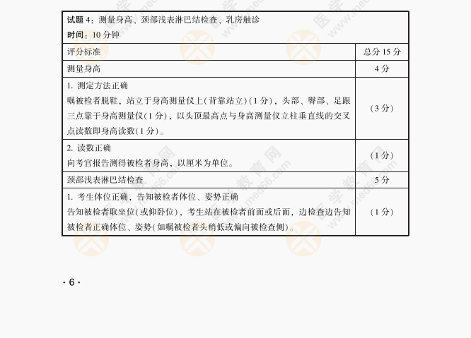 以上就是醫(yī)學教育網關于“2022年公衛(wèi)醫(yī)師實踐技能考試第一站體格檢查4號模擬題”的相關介紹,希望能夠幫助到大家,更多資訊盡在醫(yī)學教育網!