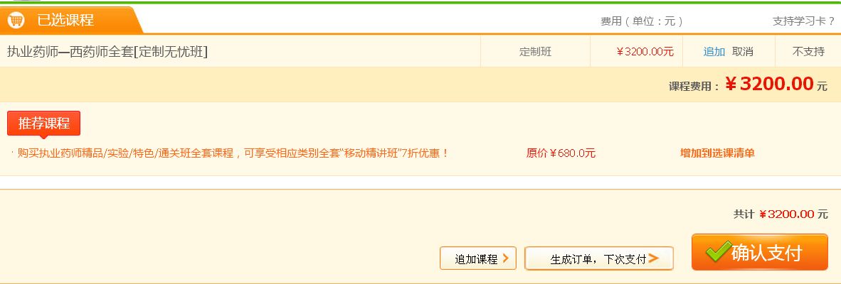第三步,選定課程繳納費用。
