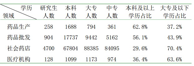 截至2016年6月30日,執(zhí)業(yè)藥師學歷分布情況:研究生5990人,本科88328人,大專99794人,中專90592人;本科及以上學歷占比33.1%.