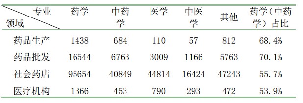 截至2016年6月30日,執(zhí)業(yè)藥師專業(yè)分布情況:藥學類專業(yè)115003人,中藥學類專業(yè)48749人,醫(yī)學專業(yè)48724人,中醫(yī)學專業(yè)17940人,其他專業(yè)54288人。藥學類(中藥學類)專業(yè)占比57.5%.