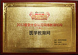 醫(yī)學(xué)教育網(wǎng)榮獲“2012最受社會(huì)認(rèn)可網(wǎng)絡(luò)教育機(jī)構(gòu)”稱號(hào)