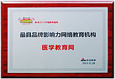 醫(yī)學(xué)教育網(wǎng)榮獲“2013年度最具品牌影響力網(wǎng)絡(luò)教育機(jī)構(gòu)”稱號(hào)