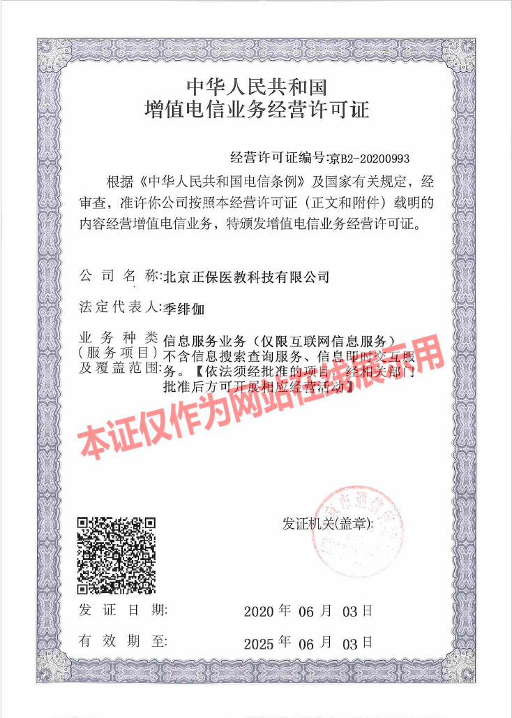 北京市通訊管理局頒發(fā)的中華人民共和國互聯(lián)網(wǎng)信息服務經(jīng)營許可證,京ICP證:京B2-20200993