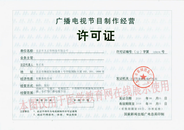公司已經(jīng)獲得北京廣播電視局頒發(fā)的廣播電視節(jié)目制作經(jīng)營許可證:京字第648號