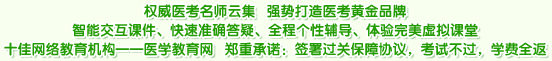 2、醫(yī)學(xué)教育網(wǎng)成立多年來,憑借雄厚的師資力量、領(lǐng)先的課件制作技術(shù)、嚴謹?shù)慕虒W(xué)作風(fēng)、極高的考試通過率、靈活多樣的教學(xué)方式,在廣大考生中樹立了良好的口碑,已經(jīng)成為醫(yī)學(xué)考試輔導(dǎo)界權(quán)威、專業(yè)的遠程教育基地。