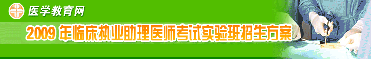 醫(yī)學(xué)教育網(wǎng)自推出臨床執(zhí)業(yè)助理醫(yī)師考試輔導(dǎo)以來,憑借雄厚的師資力量、領(lǐng)先的課件制作技術(shù)、嚴謹?shù)慕虒W(xué)作風(fēng)、靈活多樣的教學(xué)方式,高質(zhì)量的教學(xué)效果,受到了廣大考生的一致好評,在總結(jié)過去多年輔導(dǎo)成功經(jīng)驗的基礎(chǔ)上,十佳網(wǎng)絡(luò)教育機構(gòu)----醫(yī)學(xué)教育網(wǎng)組織了一大批臨床執(zhí)業(yè)助理醫(yī)師考試輔導(dǎo)專家教授,從廣大考生的實際需求出發(fā),融入先進的教學(xué)理念,大膽創(chuàng)新,結(jié)合臨床執(zhí)業(yè)助理醫(yī)師考試的命題規(guī)律、重點、難點、疑點、采用全新的智能交互手段,現(xiàn)強勢推出“2008年臨床執(zhí)業(yè)助理醫(yī)師考試實驗班”,針對每個考生的不同學(xué)習(xí)狀況、進行有針對性的講解、訓(xùn)練、答疑、?、并對學(xué)習(xí)過程進行全程跟蹤、分析、指導(dǎo),從整體上大幅提升學(xué)員的考試通過率,現(xiàn)在報名更有超值優(yōu)惠,機會難得,欲報從速。