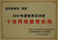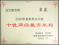 2009年1月8日,新浪教育頻道、中國教育信息網(wǎng)攜手全國幾十位行業(yè)領(lǐng)軍人物,150多家教育機(jī)構(gòu),15省40余家主流媒體,150多萬網(wǎng)友共同推出“教育成就未來 品牌鑄就輝煌--新浪2008中國教育盛典”大型系列活動在北京五洲皇冠假日酒店落幕,“醫(yī)學(xué)教育網(wǎng)”以出色的表現(xiàn)榮獲“中國十佳網(wǎng)絡(luò)教育機(jī)構(gòu)”榮譽(yù)稱號。詳情>>