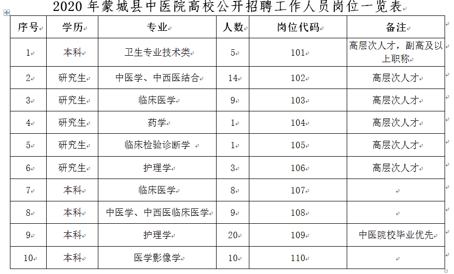 點擊鏈接查看詳情:2020年蒙城縣中醫(yī)院高校公開招聘工作人員崗位一覽表