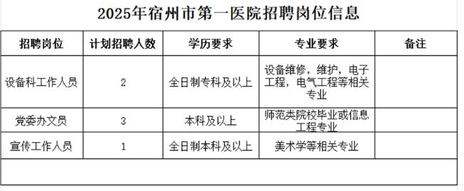 2025年宿州市第一人民醫(yī)院公開招聘工作人員的通知