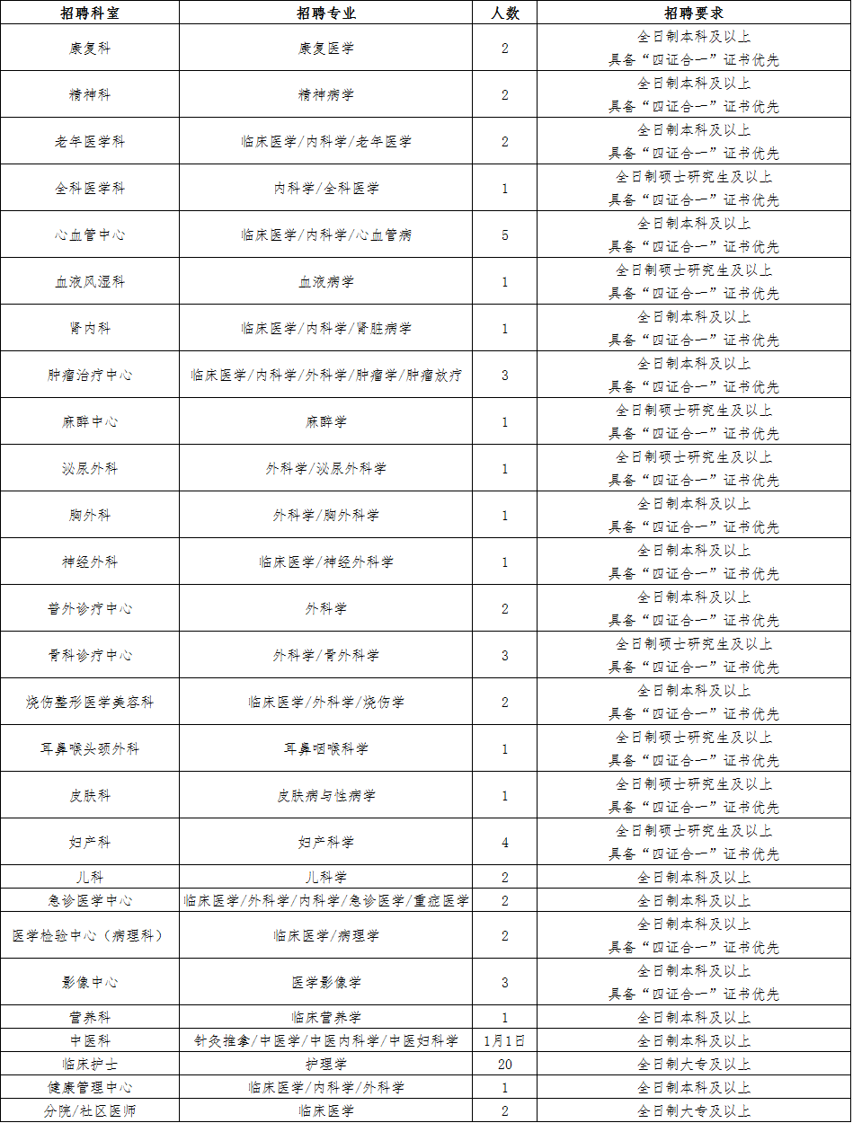 3、除以下崗位外,歡迎各科室中、高級職稱、各學(xué)科帶頭人洽談合作。