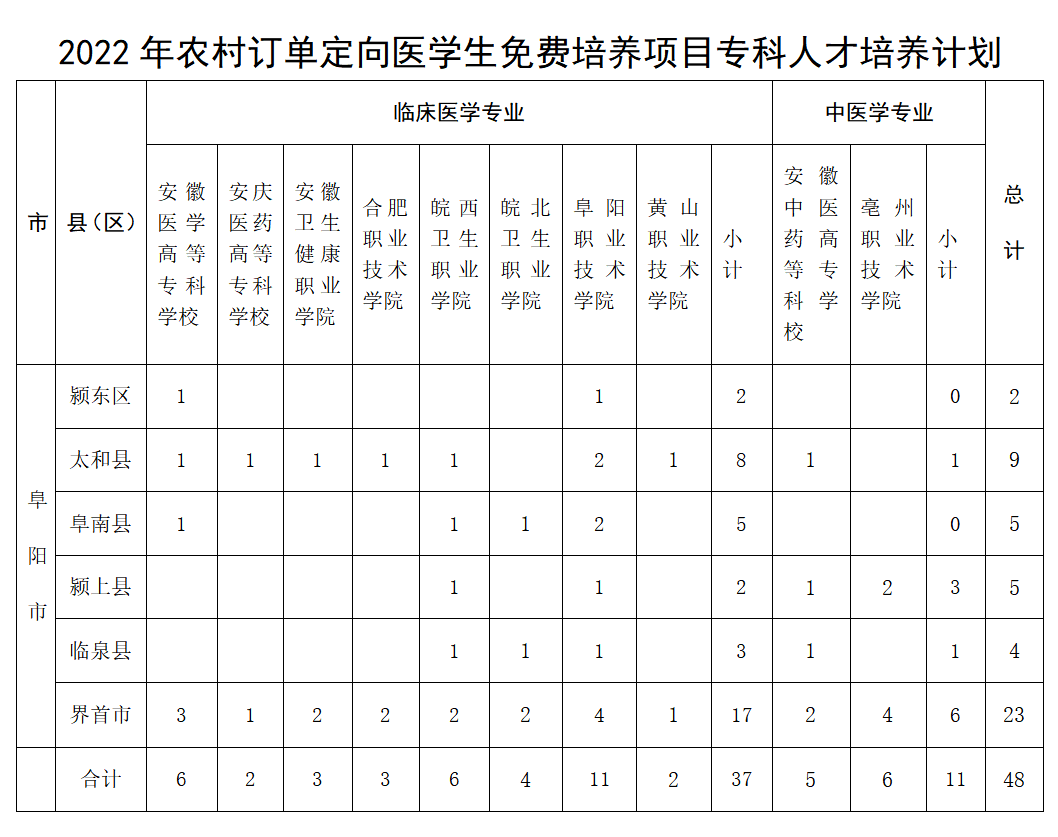 安徽省阜陽市2022年農(nóng)村訂單定向免費(fèi)醫(yī)學(xué)生計(jì)劃招生94人