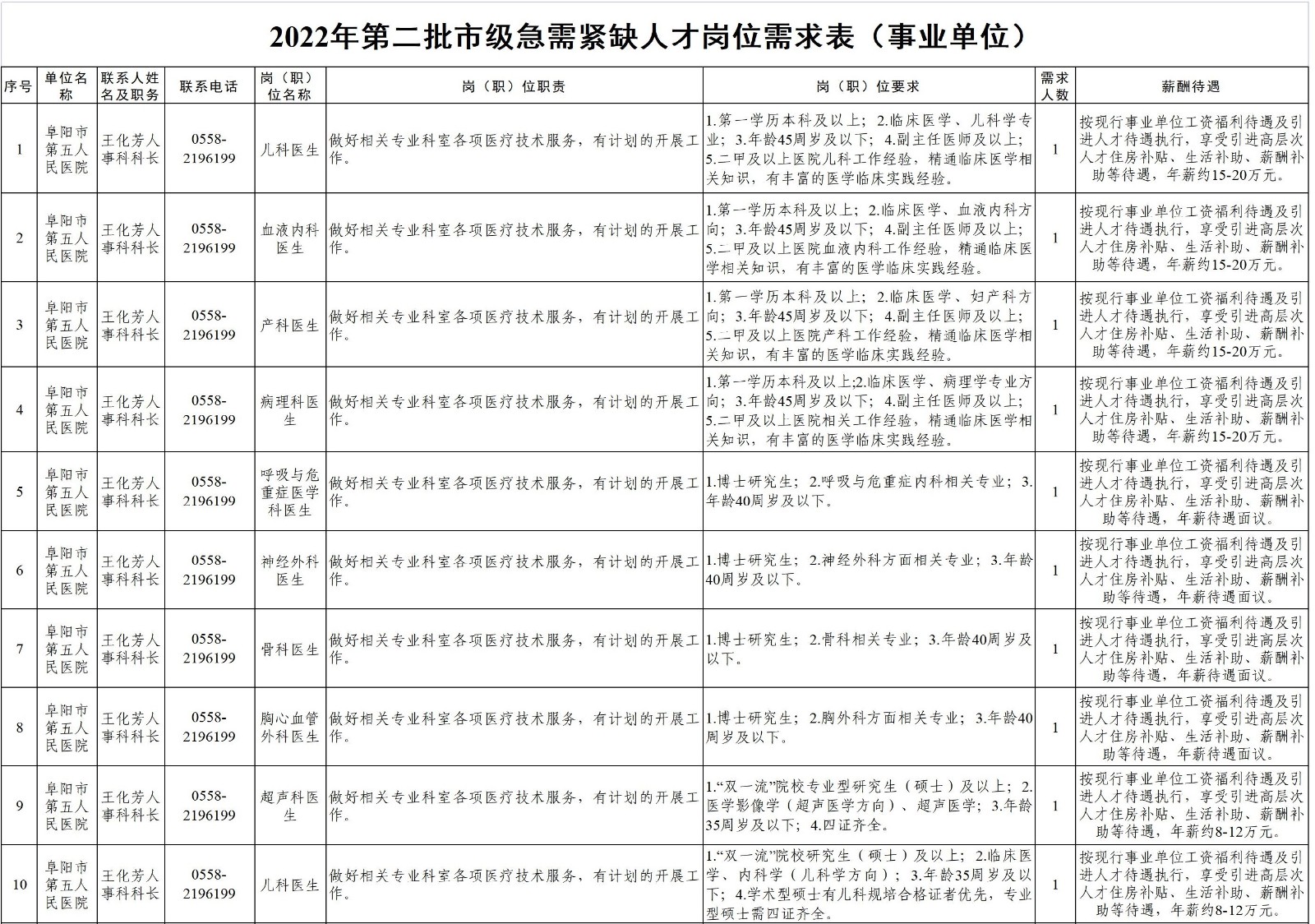 安徽省阜陽市潁泉區(qū)2022年第二批市級急需緊缺人才29人