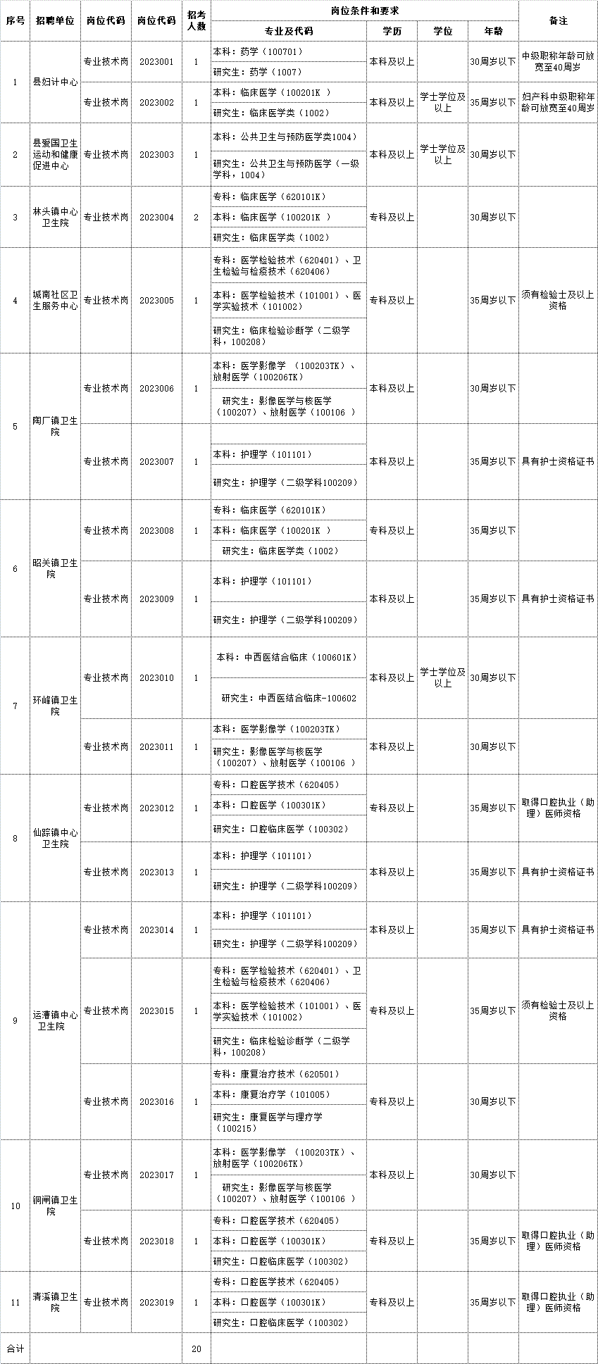 2023年含山縣醫(yī)療衛(wèi)生事業(yè)單位公開招聘工作人員20名,各招聘崗位(計劃)及報考條件見《2023年含山縣醫(yī)療衛(wèi)生事業(yè)單位公開招聘工作人員崗位計劃表》(附件)。招聘公告統(tǒng)一在含山縣人民政府網(wǎng)()、含山縣衛(wèi)生健康委員會信息公開網(wǎng)(含山縣政府信息公開網(wǎng)—政府部門信息公開—含山縣衛(wèi)生健康委員會)發(fā)布。