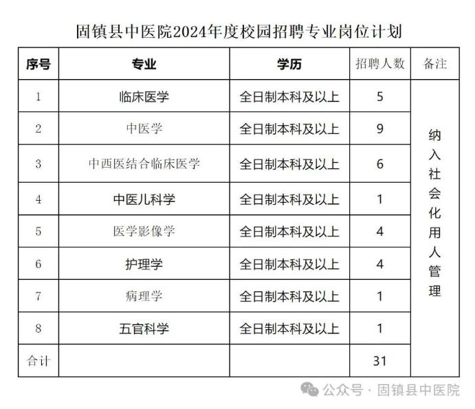 附:固鎮(zhèn)縣中醫(yī)院2024年度校園招聘專業(yè)崗位計劃表