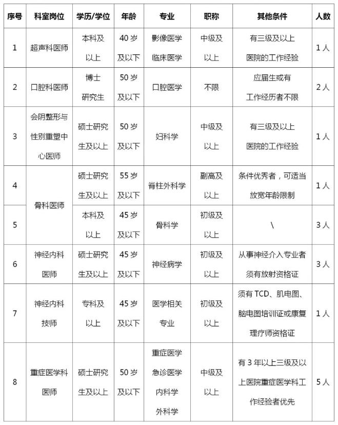 根據(jù)醫(yī)院“強???、優(yōu)綜合”的發(fā)展需要,現(xiàn)面向社會公開招聘工作人員,凡報名醫(yī)師崗位者需完成住院醫(yī)師規(guī)范化培訓(xùn),且具有醫(yī)師資格證書及醫(yī)師執(zhí)業(yè)證書。相關(guān)事項公告如下:
