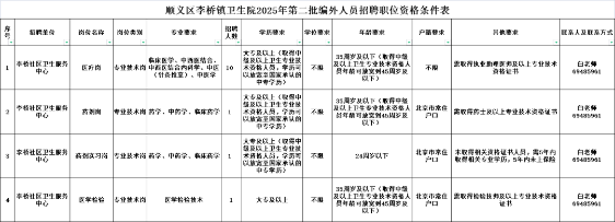 2025北京市順義區(qū)李橋鎮(zhèn)衛(wèi)生院第二次招聘編外人員13人