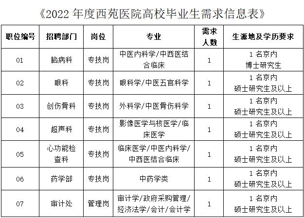 北京市西苑醫(yī)院2022年第二批招聘應(yīng)屆畢業(yè)生7名