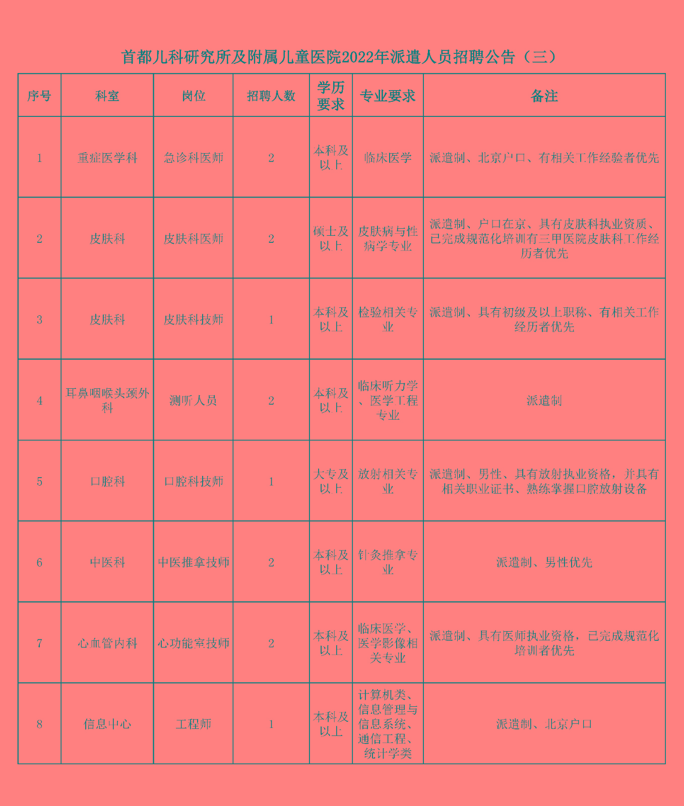 首都兒科研究所及附屬兒童醫(yī)院2022年派遣人員招聘13人