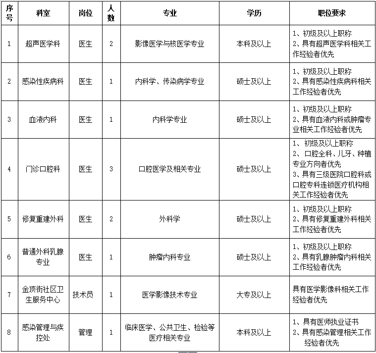 現(xiàn)根據(jù)醫(yī)院發(fā)展需要公開招聘以下崗位人員: