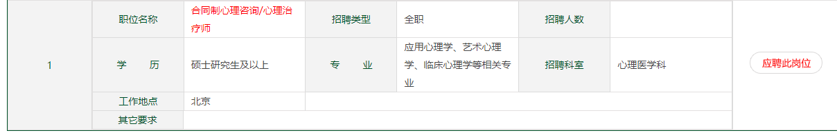 北京協(xié)和醫(yī)院心理醫(yī)學(xué)科招聘合同制心理咨詢/心理治療師1名