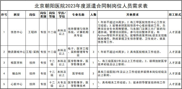 首都醫(yī)科大學(xué)附屬北京朝陽醫(yī)院2023年招聘派遣合同制崗位10人