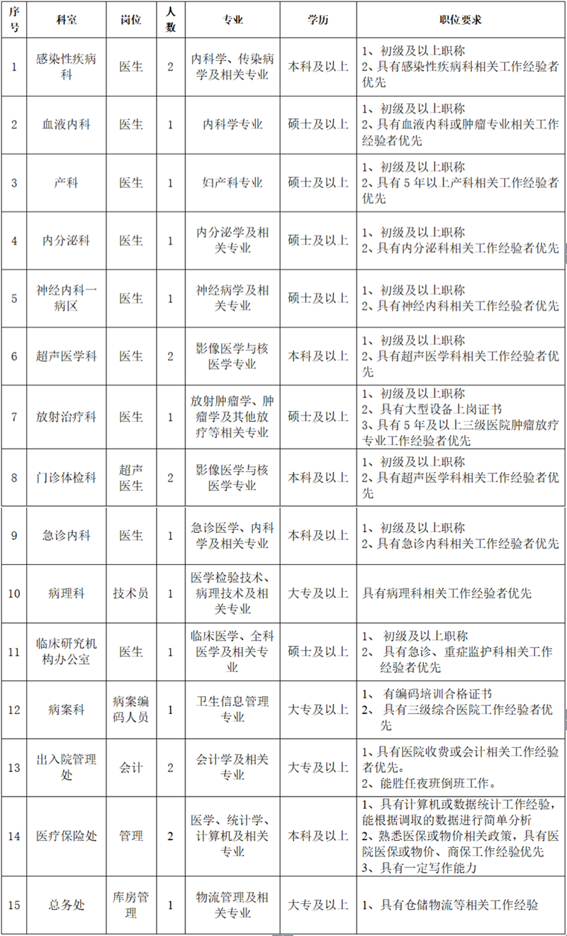 有意者請(qǐng)將個(gè)人簡(jiǎn)歷、職(執(zhí))業(yè)證書(shū)、學(xué)歷證書(shū)等相關(guān)材料掃描件發(fā)郵件至。郵件主題:應(yīng)聘科室+姓名+崗位。