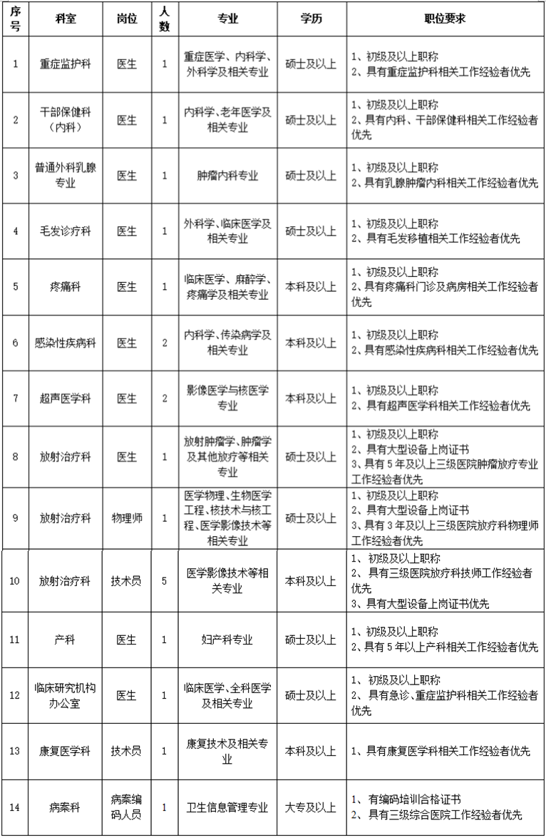 有意者請(qǐng)將個(gè)人簡(jiǎn)歷、職(執(zhí))業(yè)證書(shū)、學(xué)歷證書(shū)等相關(guān)材料掃描件發(fā)郵件至。郵件主題:應(yīng)聘科室+姓名+崗位。