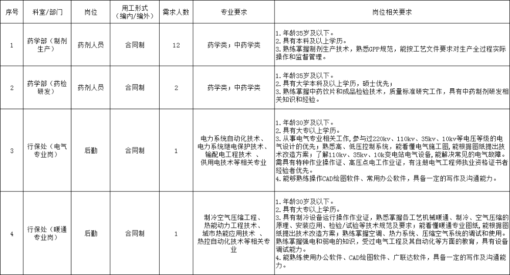 詳見《2023年度公開招聘合同制職工需求信息表》