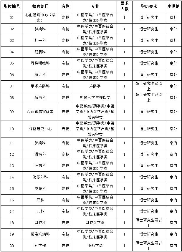中國(guó)中醫(yī)科學(xué)院西苑醫(yī)院招畢業(yè)生20人