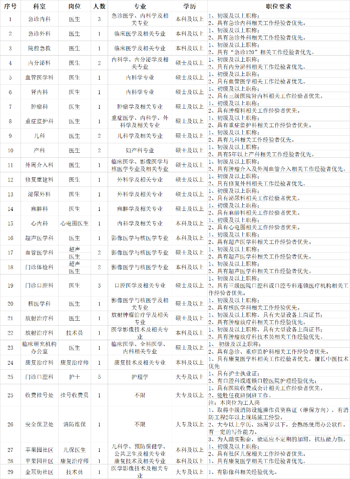 現(xiàn)根據(jù)醫(yī)院發(fā)展需要公開招聘以下崗位人員:
