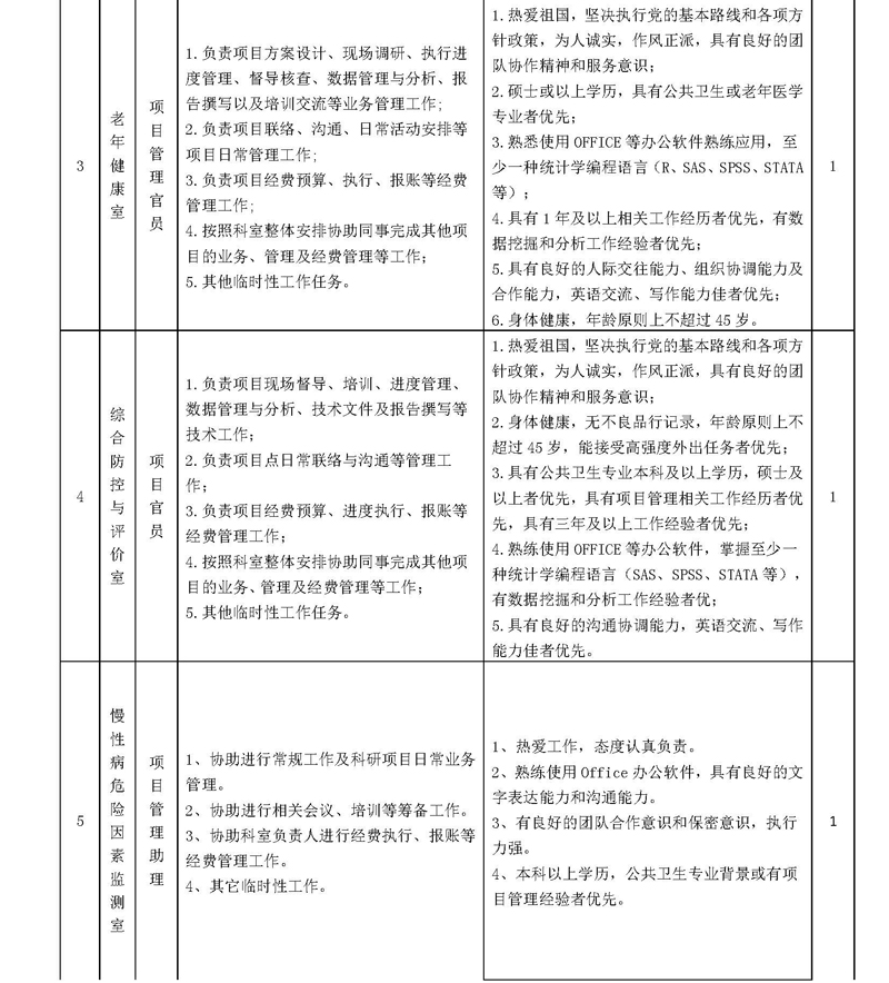 招聘崗位及崗位要求詳見(jiàn)《2021年中國(guó)疾控中心慢病中心招聘需求計(jì)劃表》。