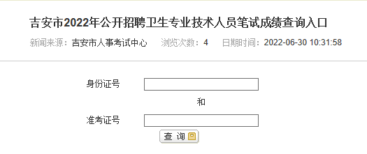 吉安市2022年公開招聘衛(wèi)生專業(yè)技術(shù)人員筆試成績查詢?nèi)肟陂_通!