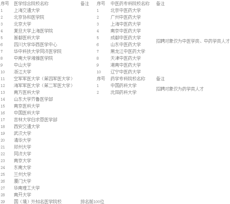重慶市第六人民醫(yī)院市外招聘學校一覽表