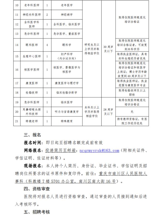 醫(yī)療招聘進(jìn)行時!各地紛紛發(fā)布醫(yī)療招聘公告,廣納賢才,醫(yī)學(xué)教育網(wǎng)為了更好的服務(wù)有就業(yè)意愿的相關(guān)醫(yī)療人員,將會為大家整理并更新各地醫(yī)療招聘的相關(guān)公告,大家可持續(xù)關(guān)注!以下是公告“重慶市南川區(qū)人民醫(yī)院2025年編外招聘簡章”的相關(guān)內(nèi)容: