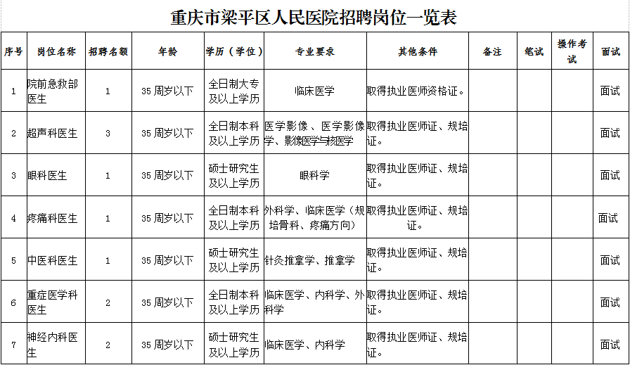 招聘崗位詳見附件《重慶市梁平人民醫(yī)院招聘崗位一覽表》
