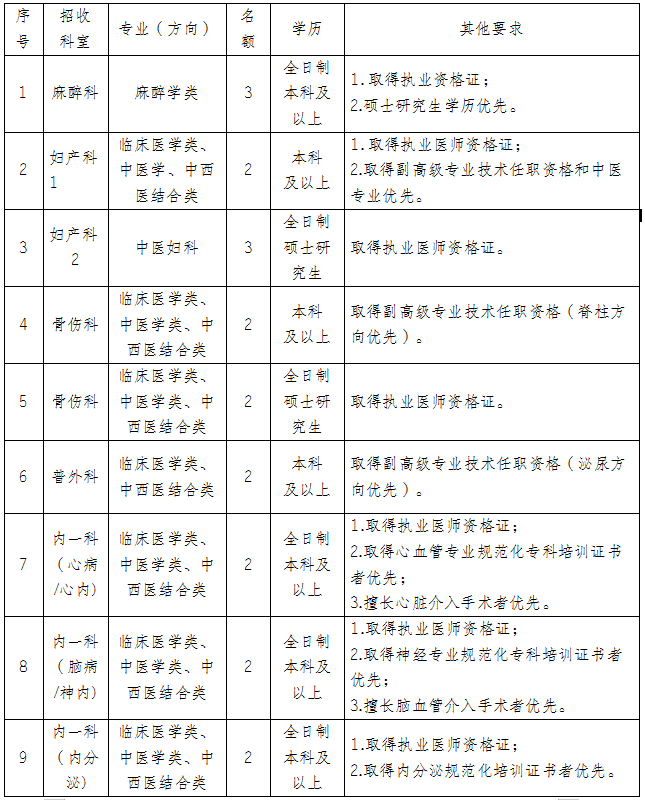 很多即將步入醫(yī)療崗位的朋友們都非常關(guān)注所在地區(qū)醫(yī)療崗位的招聘公告信息,醫(yī)學(xué)教育網(wǎng)醫(yī)療衛(wèi)生招聘欄目為了更好的服務(wù)正在找工作的醫(yī)療相關(guān)專業(yè)人員,每天為大家整理搜集新鮮的各地醫(yī)療衛(wèi)生系統(tǒng)/醫(yī)院等招聘公告通知和信息,歡迎大家查看!以下是公告通知:重慶市南川區(qū)中醫(yī)醫(yī)院長(zhǎng)期招聘醫(yī)務(wù)人員78名,內(nèi)容如下:
