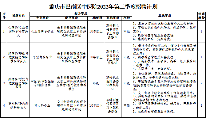 重慶市巴南區(qū)中醫(yī)院2022年第二季度招聘工作人員21名