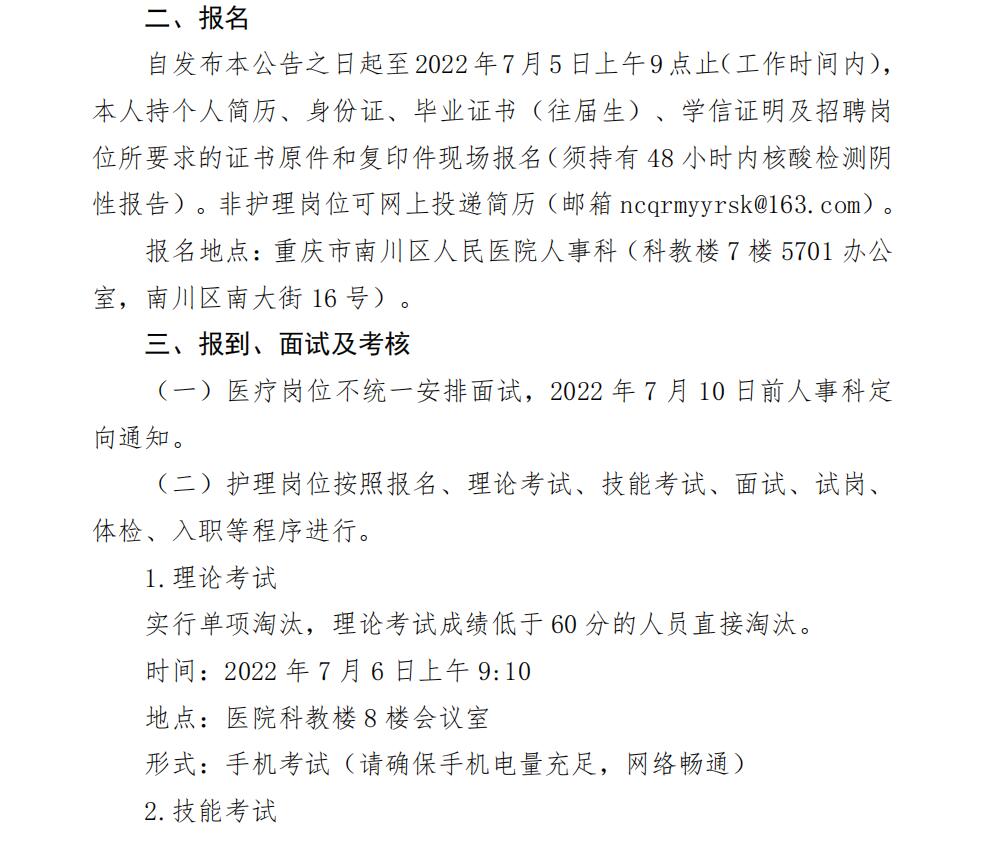 重慶市南川區(qū)人民醫(yī)院2022年6月招聘工作人員53人