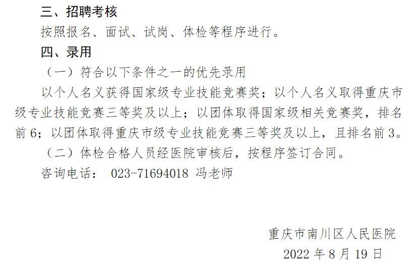 醫(yī)學(xué)教育網(wǎng)醫(yī)療衛(wèi)生招聘欄目每天都會(huì)更新全國(guó)各地新鮮招聘公告信息,致力于為廣大即將進(jìn)入醫(yī)療衛(wèi)生系統(tǒng)/醫(yī)院/醫(yī)療事業(yè)單位的工作人員進(jìn)行服務(wù),以上就是醫(yī)學(xué)教育網(wǎng)小編為大家整理的:重慶市南川區(qū)人民醫(yī)院招聘兒童康復(fù)技師2名,希望能夠幫助到大家。